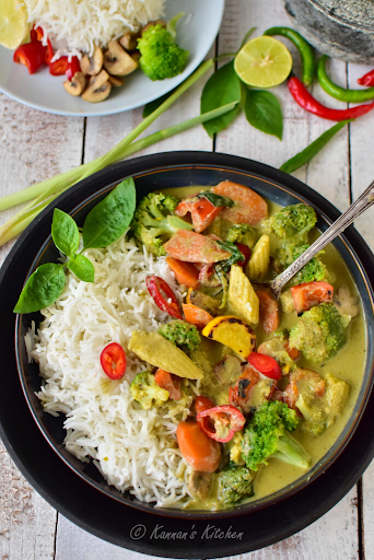 Hello ladies, I am sharing my recipe of making Veg Thai green curry. Generally, there are three types of Thai curry paste: red, green, and yellow. But I like green paste curry compared with other 2 because it has the freshness of green leaves.