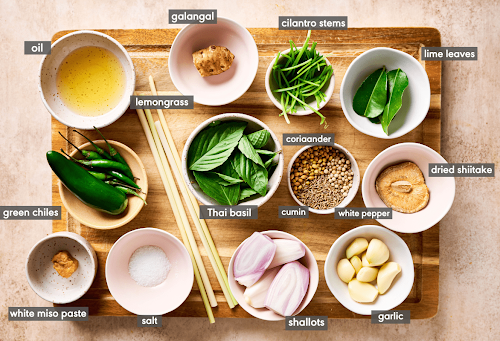 Firstly, we will need to make a Green thai curry paste.